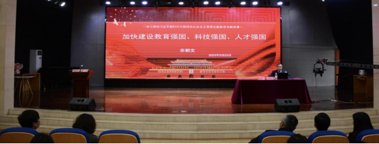 2023年5月23日下午14:30,校党委委员佘朝文副校长在崇文楼401报告厅的主题教育专题党课正式开讲,学校党政办公室、人事处、资产管理处、继续教育学院、betway必威中国、法学院教职工党员和学生党员代表共200余人聆听党课。betway必威中国党委书记蔡艺主持党课。 佘朝文同志以“加快建设教育强国、科技强国、人才强国”为题,围绕“深刻认识教育、科技、人才事业一体化部署的重要意义”“准确把握教育优先发展、科技自立自强、人才...
