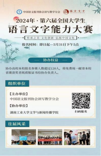 一、活动背景为全面贯彻落实《国家中长期教育改革和发展规划纲要》《国家 通用语言文字法》,弘扬中国优秀文化,强大学生规范使用国家通用 语言文字的意识,促进语言文字教、学、测协调发展,提升当代大学 生的语言文字知识和应用能力,中国语文报刊协会读写教学分会面向 全国大学生举办“全国大学生语言文字能力大赛”。必威官方首页官网文 学与新闻传播学院从各方面积极配合项目建设,现协办全国大学生语言文字能力大赛的初赛。二...