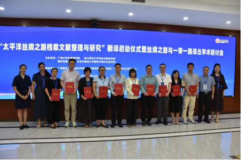 “太平洋丝绸之路档案文献整理与研究”翻译启动仪式暨“丝绸之路”与“一带一路”译丛学术研讨会于2025年9月12日至14日在广西南宁举行。会议由广西大学外国语学院、四川师范大学革命文献研究院、重庆出版社、北京外国语大学国际中国文化研究院联合主办,广西高校人文社会科学重点研究基地亚太(东南亚)翻译与跨文化传播中心承办。来自全国十余所高校及出版界的40余位专家学者参会。本次会议围绕“太平洋丝绸之路档案文献整理与...