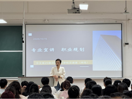 10月14-15日晚,我们广告系、新闻系和中文系为2025级广告学专业、网络与新媒体专业和汉语言、汉语言师范专业新生举办入学专题讲座,围绕汉语言师范、网络与新媒体、广告学三大专业展开深度解读,并首次系统融入职业规划指导,帮助新生了解专业结构与课程设置,明确学业方向与职业路径。中文系刘飞娥主任介绍汉语言师范专业聚焦“语言素养+教育能力”,培养中学语文教师及教育研究者;汉语言师范专业通过微格教学、教育实习等课...