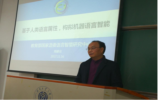 11月16日上午,我们203教室,首都师范大学语言智能研究专家周建设教授应邀来我们讲学,举行了题为《基于人类语言属性,构拟机器语言智能》的学术讲座。