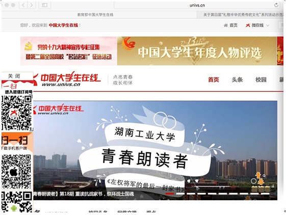 4月6日,由我们团总支录制的“青春朗读者”作品《左权将军的最后一封家书》荣登教育部中国大学生在线首页。