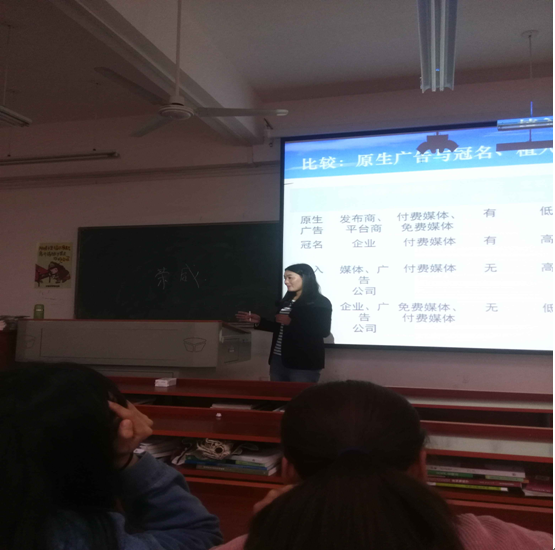 4月19号下午2点30分,窗外春雨霏霏。文新楼101教室,不时传来阵阵热烈的掌声,我们新闻系雷晓艳博士应广告系邀请为广告专业的同学作了题为《沉浸和精准:原生广告的全媒体营销路径》的学术讲座。