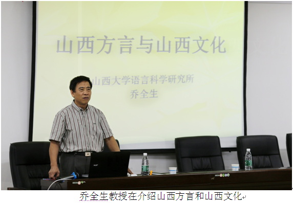 乔全生教授是中国语言学会理事、全国汉语方言学会理事、中国音韵学会会长和山西省语言学会会长。他从认识山西方言开讲,运用山西各地的方言谈话视频、山西方言所保留的大量宋元以来的古词语和当今普通话相对应词语的逐一对比,以及大量唐宋诗词按山西方言朗读押韵的例子,生动阐述了山西方言作为黄河流域、黄土高原上的一支古老方言,是古代语言的“活化石”,无论就其形成的历史还是所保留的古代语言文化,在汉语发展史上均占有突出地位,研究山西方言对了解山西文化、汉民族文化均有重要的积极意义。乔教授还深入详尽地就山西方言与当地民俗、特产(醋文化、煤炭文化、红枣文化、饮食文化)、特色文化(窑洞文化、牛“文化”)、数字文化和山西民歌等方面的关系及其巨大促进作用,与大家分享了自己多年的广泛实地调查及研究成果,突显了方言与社会及文化发展和人民生活的紧密联系及其重要意义和作用。乔教授认真严谨、生动有趣的讲解赢得了在场师生的热烈掌声。