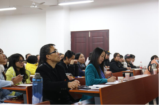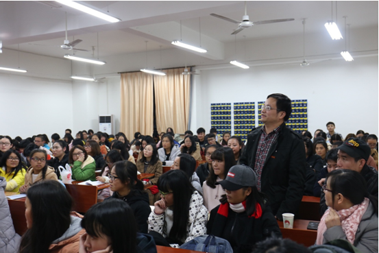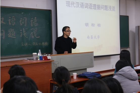 11月20日晚,必威官方首页官网语言文字工作系列活动暨工大中文论坛学术报告会在文新楼101教室如期开展,南昌大学人文学院胡松柏教授应邀来我们讲学,举行了题为《现代汉语词语理据问题浅说》的学术讲座,学院党委书记阎晋武、语委办主任陈山青、中文系系主任刘伟生、王小辉老师和张昕老师,以及慕名前来的株洲市市民、学院师生等百余人聆听了讲座。学院党委书记阎晋武主持讲座。
