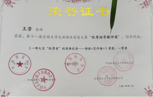 第11届全国大学生新媒体创意大赛获奖名单近日公布。我们新闻系牛晓烨、杨世豪、李洋、古婧、王传坤团队拍摄、制作的《一部大宋“孤勇者”的英雄史诗——领读<范仲淹>》作品荣获“文学校园·寻找大学生领读人”短视频赛项——凤凰出版赛道一等奖。