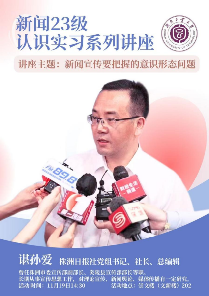 新闻专业要培养怎样的人?互联网时代,新闻人才如何做好意识形态工作?11月19日下午,株洲日报社党组书记、社长、总编辑谌孙爱走进大学课堂,为我们新闻专业2023级本科生带来了一场题为“坚持党管宣传,党管媒体,切实维护新闻传播领域意识形态安全”的讲座。
