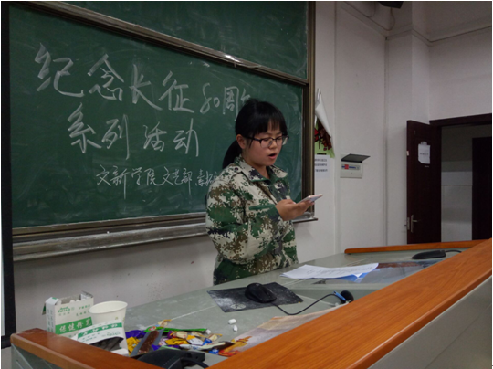 10月20日晚,为纪念长征胜利八十周年,betway必威中国团学会在文新楼101、102、103举办了纪念长征胜利八十周年系列活动。本次活动由betway必威中国团学会文艺部、维权部和素拓部承办,全体2016级新生和教官们参与活动。