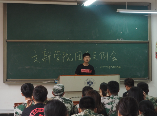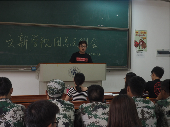 会议伊始,团学会主席王杰强对近来各项工作的成绩和不足和日后的工作安排作了主要发言。首先强调了教室卫生,要求每位同学随手带走自己的垃圾,保持教室的整洁干净。这不仅是一个学子该做的,也更能体现我们文新学子的内在素养。随后他还强调了纪律问题,并要求各班班长和团支书告知班上同学请假条已更新,请假必须按照流程。最后,副主席徐景佳及团学会几个部门部长强调了日前的几项工作,希望班长团支书配合安排好工作。