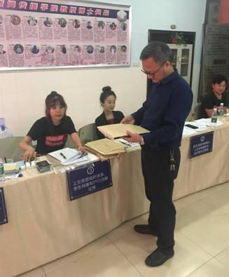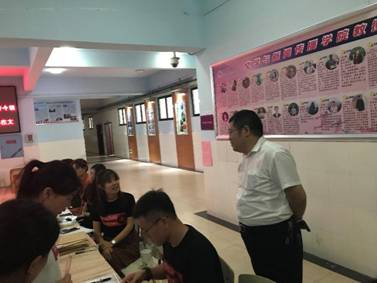 吴永辉处长自进入文新楼大厅始便与学院新生辅导员级迎新值班干部就迎新的工作细节等进行了细致的交谈,随后他察看了学院新生家长休息室与志愿者休息室,他表示一定要注重对远道而来的家长们的款待,同时也要保证参与迎新的志愿者们有足够的休息时间与空间。李正军处长对学院迎新工作点的学生档案、学生业务知识以及报导报道等各个流程进行了详细的了解,他指出学院务必要认真对待迎新工作,展现学校学院的工作能力,要让新生们有一次顺利便捷的报到体验。