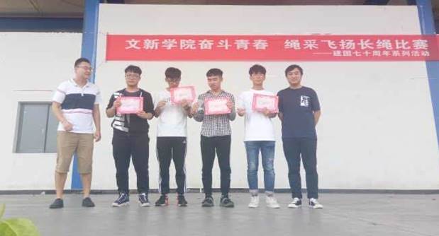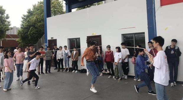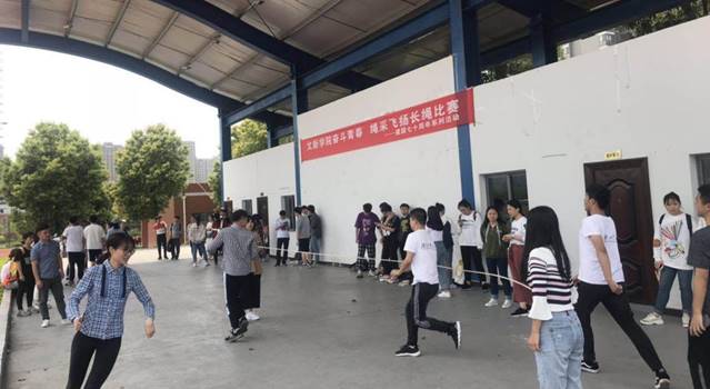 在党委副书记国秀琴老师为活动致辞后,主持人宣布活动正式开始。共有12个班级代表队参加比赛,采取"8字跳"模式,比赛首先进行初赛,取前六名晋级决赛。随着裁判的一声令下,比赛激烈而有序地进行着,围观的同学也不停地为参赛选手加油鼓劲。选手们在比赛中一展风采,给在场的观众带来了全新的视觉享受。经过激烈的角逐,文预1801班、文预1802班、新闻1803班、中文1801班、广告1801班与广告1802班进入决赛。决赛于4月9日在五食堂田径场举行,最终新闻1803班夺得一等奖,文预1802班赢得二等奖,广告1803班取得三等奖。学工办苏鑫龙老师和乔治彦诚老师分别向获奖班级颁发了荣誉证书和奖杯。至此,本次比赛圆满结束。