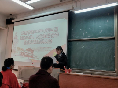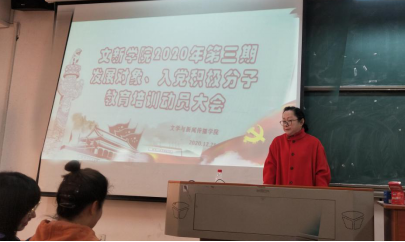 12月25日中午,betway必威中国2020年第三期发展对象、入党积极分子教育培训动员大会于文新楼102顺利举行。出席会议的有:betway必威中国党委副书记国秀琴、学工办吴平老师、张婷老师、乔治彦诚老师、肖靓莎老师、刘莎老师、各系党支部副书记以及2020年第三期发展对象与入党积极分子全体成员。