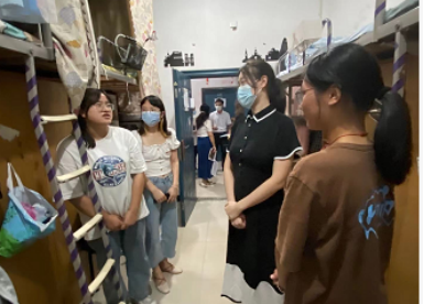 9月12日晚,学院党委副书记文春风与学工办全体辅导员走访慰问2021级新生,实地了解新生到校入住的具体情况。