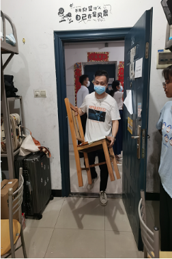 辅导员叶鑫、杜宏任老师在走访寝室的过程中了解到有同学寝室座椅坏了,两位老师想学生之所想,急学生之所需,立即调配到寝室座椅,并搬送到学生寝室中。