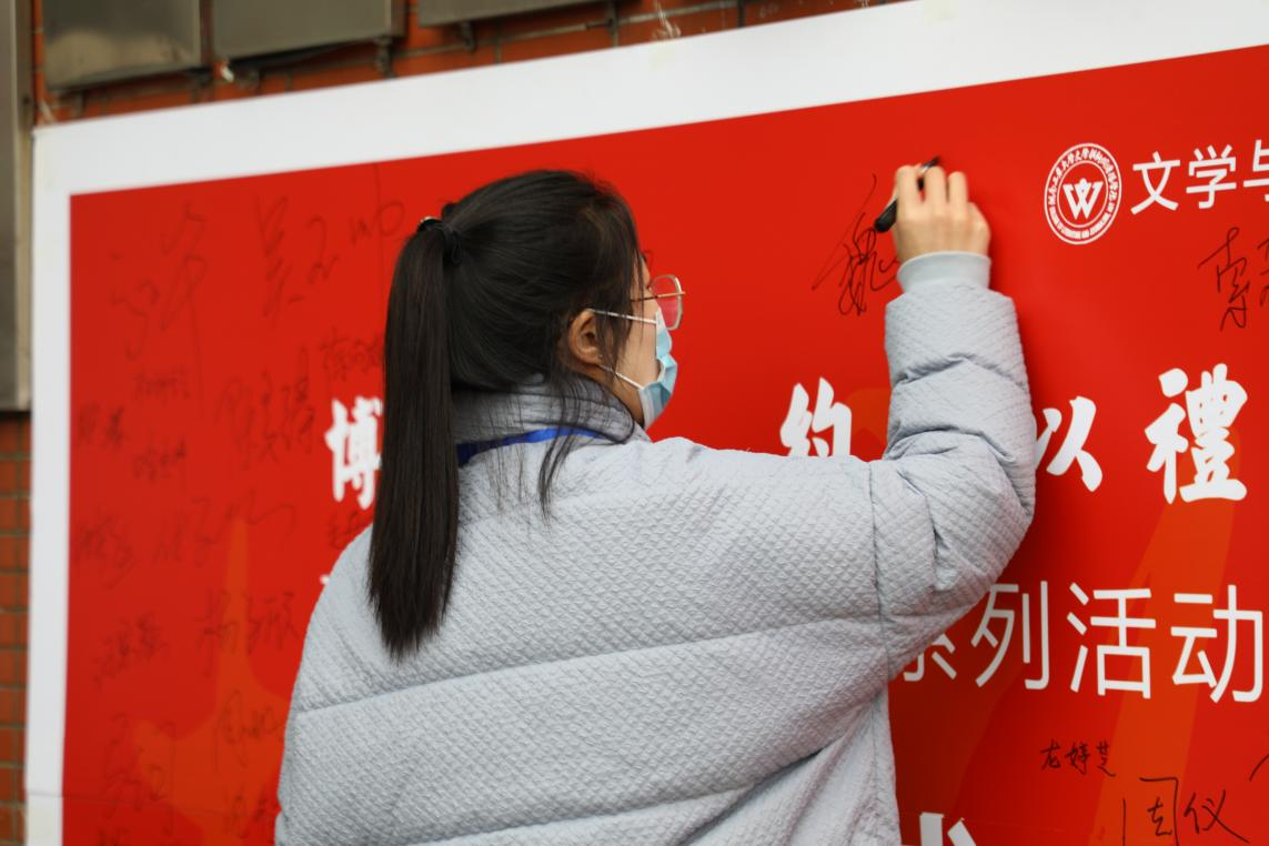 启动仪式结束后,同学们纷纷签名,积极响应同心战“疫”,与“礼同行”主题活动,为学院、学校防疫抗疫贡献自己的一份力量。(乔治彦诚)