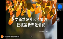 最后,叶鑫老师对社区疫情防控相关工作推行做出要求,希望广大同学们正确理解,积极配合,再次强调本次会议主题,希望寝室长们负起责任,做好宿舍环境管理,关注寝室成员行踪及心理状况,为科学防疫、健康社区建设尽责献力。(叶鑫)
