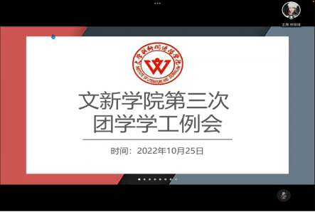 10月25日中午13:00,我们第三次团学学工例会于线上腾讯会议顺利召开。学工办主任刘莎、学工办老师杜宏任出席会议,第十一届团学会全体成员、19-22级各班班长、团支书参加会议。