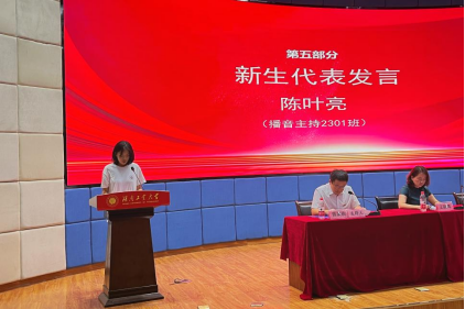 接下来,教师代表刘飞娥老师发言,表达了对新生们的期望和祝福。她希望新生们能够珍惜时光,勤奋学习,不仅要掌握专业知识,还要培养自己的综合素质,为将来的社会和工作打下坚实基础,不断追求卓越,努力成为具有社会责任感和创新精神的优秀文新人才。随后,老生代表广告2001班的汪思颖同学发言,她首先代表betway必威中国全体老生向23级新同学的到来表示热烈的欢迎和衷心的祝贺。其次作为学长学姐,他们将尽自己所能帮助新生们更好地适应大学生活,为他们提供力所能及的帮助和建议。随后是新生代表陈叶亮同学发言,她表示,自己将珍惜在大学的时光,努力学习,不断提升自己的专业素养,同时,新生们也应当积极参与学院的各项活动,提高综合素质,促进全面发展。