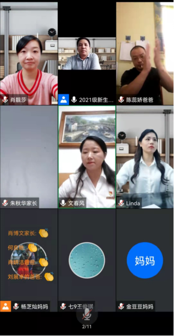 会议结束之际,线上参会全体老师对家长的辛勤付出表示衷心的感谢!并祝福2021级新生在家校同心同向、同力同行的支持下,在自己拼搏奋斗的青春里,不断进步,德才兼备、学以成人,成长为国家的栋梁之材,成长为德智体美劳全面发展的社会主义建设者和接班人!