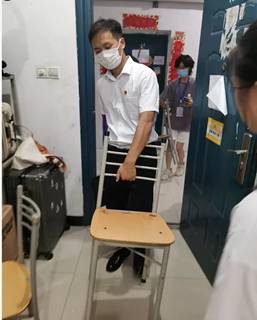 辅导员叶鑫、杜宏任老师在走访寝室的过程中了解到有同学寝室座椅坏了,两位老师想学生之所想,急学生之所需,立即调配到寝室座椅,并搬送到学生寝室中。