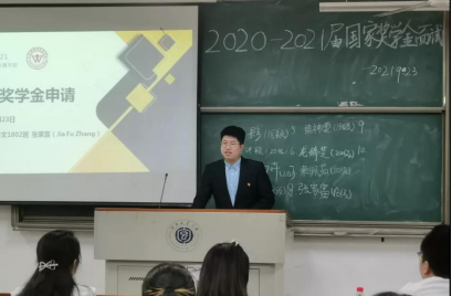 2021年9月23日19:00-20:50,我们于203教室进行了2020-2021国家奖学金面试。学院党委副书记文春风老师、学工办主任刘莎老师、叶鑫老师,肖靓莎老师、乔治彦诚老师、高子华老师、杜宏任老师、陈美臻老师以及基金会负责人员出席并主持了此次会议,参加者为本次国家奖学金评定的面试者。