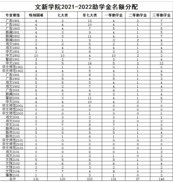 10月27日,各班按照《betway必威中国2021年国家助学金名额分配说明》分配了助学金各等级名额,并向文新基金会汇报了评定会议结果。