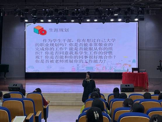 其次,肖靓莎老师讲到了关于心理亚健康的知识,肖老师指出学生干部有多重压力源是最容易心理亚健康的,因此学生干部应该调整好心态。尽管“期望值越高,弹性和韧性越大”,但是要掌控好期望与压力之间的平衡,学会释放自己的压力,如此才能在以后的工作中做的越来越优秀。