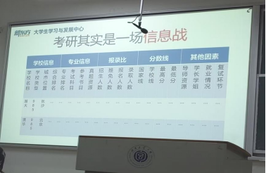 最后,就如何择校的问题进行讲解分析。王老师叮嘱同学们择校时需考虑多方面的因素,包括学校的招录比、报录比、复试平均分数线等,有目标、有方向的进行复习才能提高升研率。宣讲中王老师不仅为我们的准研究生们答疑解惑,还为有意向考研的同学拓宽知识面,充分了解考研的相关信息。