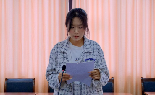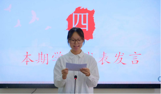 中文2301班凌军艳同学代表本期入党积极分子发言。她表达了对党组织的崇高敬意和对参与培训的热切期待,并号召入党积极分子培训班的学员以更高的标准要求自己,以实际行动践行入党的决心,为实现中华民族伟大复兴的中国梦贡献力量。