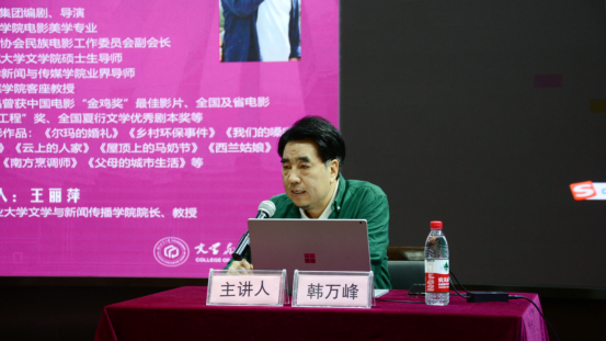 韩万峰导演围绕"民族电影创作与构筑中华民族共有精神家园的实践"展开讲座。韩导从民族电影创作的个人视角表达了对民族电影未来发展的理解;阐述了在全球化、城市化、现代化进程中,其个人创作形态和创作风格逐渐实现突破和转变,进入到与时代同步的民族融合多元叙事,进而致力于构筑中华民族共有精神家园的实践;强调在民族电影的创作中,需坚持自己的创作定位,抓住当下少数民族文化的独特性,讲好各民族当代故事,为少数民族电影发展探索新路径。