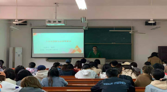 首先,吴平老师对于当前的创业环境进行了分析,他指出当前国家大力支持高校毕业生自主创业,对于大学生创业也有较大的政策支持,如减免行政事业性收费;按规定落实税收优惠;创业补贴;创业培训补贴;创业吸纳就业奖励;入驻大学生创业园区指导服务等。同时还以湖南宇科网络科技有限公司举例,这个公司就是我们学生在创业孵化园中成立的一家公司。他们的成功案例激励了不少同学,同时讲解了我们对于大学生创新创业的帮扶鼓励政策,鼓励大家积极创新,努力创业,为祖国繁荣昌盛做出一定的贡献,同学们听的群情激昂,纷纷摩拳擦掌,想要大干一场,但吴平老师也让大家冷静创业,不能是在冲动的情况之下作出决定,要找好商机,顺应时代的浪潮,在时代的前沿创新创业。