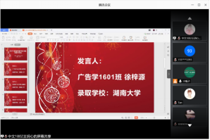 第一位发言人是来自于广告1601班的徐梓源,成功考入湖南大学,徐同学为考研学生们总结了几个点。他分享了自己在英语单词方面上至少将自己的英语单词过了三遍,阅读理解等要注意在试卷上做标记,可以自己整理电子版本或者是自己购买往年学长学姐的笔记本,并且在专业课方面要对自己所考的学校的书目要十分熟悉。