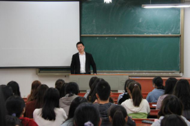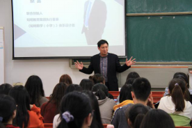 紧接着由中学高级教师王军老师为学生讲授了一节以《让你的第一次亮相过目不忘》为主题的课堂。他告诉学生良好的开端是成功的一半,并且通过一系列的案例分析为大家传授了自我介绍中可用到的“有范,有料,有趣,有创意”这四个秘决。