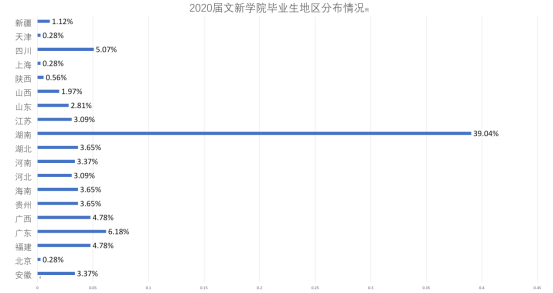 从2020届毕业生就业区域来看,北上广等一线城市已不是优先考虑的地区,毕业生更倾向于选择回生源地就业。我们2020届毕业生就业数据显示,有102名毕业生在湖南省就业,占就业总人数39.04%,其余毕业生在我国各地域均有分布。从就业地域来看我们2020届本科毕业生分布地区较广,各省市就业人数分布较为均匀。