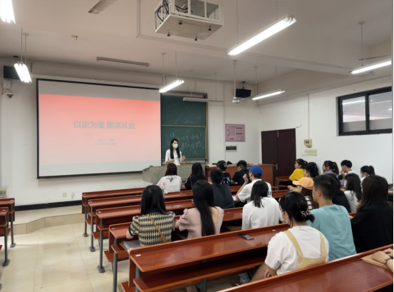 6月7日中午,新闻系学生党支部于文新楼202教室顺利开展《以史为鉴廉洁从业》主题党课活动。此次党课由支部书记刘莎老师担任主讲、我支部全体人员参加了本次活动。