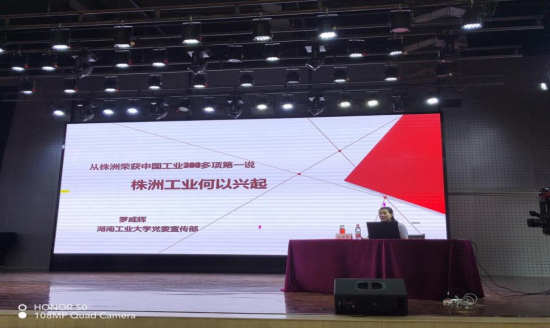 宣讲会上,罗咸辉部长就“从株洲荣获中国工业300多项第一说株洲工业何以兴起”进行主题宣讲,主要从株洲荣获中国工业300多项第一、区位、政策以及工业集聚四个视角为我们解读了株洲工业兴起的原因。在会议上,罗咸辉部长谈到:“株洲71年的历史就是一部能说的中国工业史,株洲是火车拉来的城市,是一座因工业而起,因工业而兴的城市。”2020年9月习近平总书记来湖南考察时提出“三高四新”战略任务和使命,着力打造国家重要先进制造业高地就是其中一高,株洲正是这一任务的关键城市,而株洲也紧跟国家发展提出“培育制造名城,建设幸福株洲”的目标;同时,罗部长强调:“工大学子不仅是我们的一份子更应该是株洲未来的建设者,幸福株洲需要大家齐心协力。”期待文新学子未来可期、不负韶华!