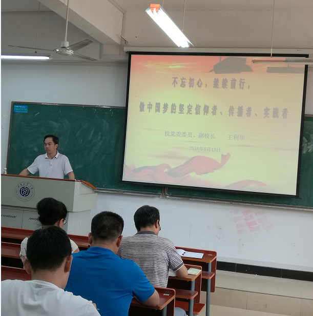 根据betway必威中国党委“两学一做”专题学习教育安排,9月13日下午,在文新楼202教室举行专题报告会,校党委委员、副校长王利华主讲,全院教职工及学生党员参加。王校长以“不忘初心,继续前行,做中国梦的坚定信仰者、传播者、实践者”为题,从“初心是什么”“成功靠什么”“前行做什么”“当下行什么”等四个方面给我们解读了习近平总书记“七一”重要讲话精神。