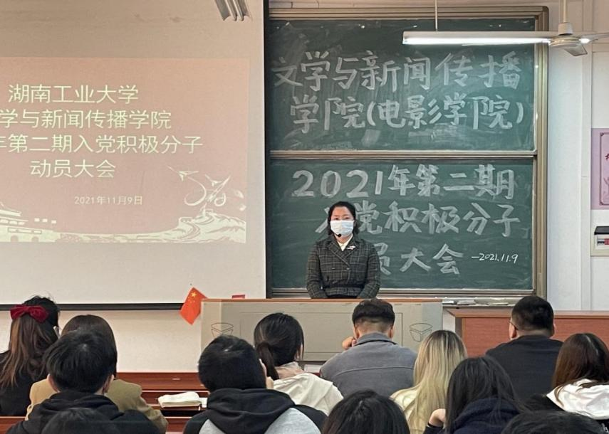 11月9日下午,在崇文楼205举办2021年第二期入党积极分子动员大会,此次大会由文新与新闻传播(电影)学院团总支组织部负责人杨佩玲主持,学院党委副书记文春风、学工办全体老师与2021年第二期入党积极分子共同参加此次会议。