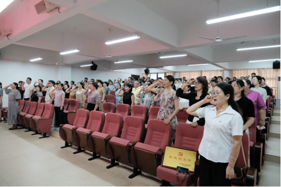最后,全体党员肃立,面向鲜红的党旗,高举右拳,庄严地重温入党誓词暨新发展党员入党宣誓。铿锵有力的誓言在会议室中回荡,每一位党员的心灵都受到了深刻的洗礼,更加坚定了为共产主义事业奋斗终生的理想信念。