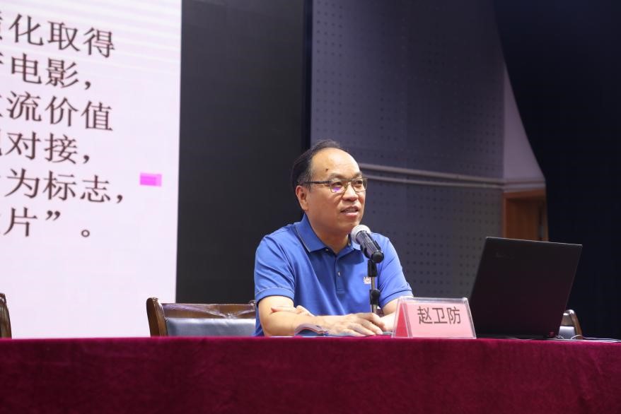 “新主流大片”是主流电影在新时代自我嬗变的一种新形态,从 21 世纪第二个十年开始涌现于中国影坛,其最显现的标志便是将主流价值观表现和类型书写融合,以此对新时代中国电影进行艺术和产业升级。至今,“新主流大片”的实践创作已趋于成熟,成为目前最受关注的国产电影种类。新时代以来,新主流大片如何助推的当下国产电影进行转型升级?其有哪些艺术突破?基于上述问题,7月12日上午,中国艺术研究院影视所所长赵卫防研究员为“新时代、新影像、新广告”研究生暑期学校的学员们带来了一场主题为“新时代 新影像——新主流大片和当下国产电影转型升级”的讲座。