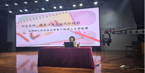 6月12日下午,美国圣·彼得大学江岚教授应邀来我们讲学。本次讲座以《归去来辞:欧美汉语文坛代际掠影——与湖湘文化走出去背景下的华人文学叙事》为主题,面向热爱文学的师生。讲座结束后,现场学子纷纷表示,江岚教授娓娓道来、深入浅出的讲座使他们受益匪浅,拓宽了他们的认知视野,为他们开启了一扇了解海外华文创作的大门。