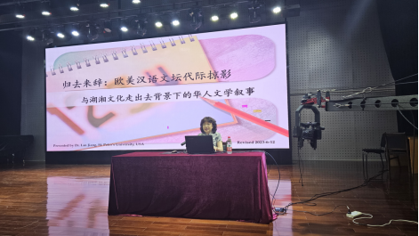 6月12日下午,美国圣·彼得大学江岚教授应邀来我们讲学。本次讲座以《归去来辞:欧美汉语文坛代际掠影——与湖湘文化走出去背景下的华人文学叙事》为主题,面向热爱文学的师生。讲座由副院长蒋军凤教授主持。江岚教授围绕海外华文创作由谁写、具体写什么内容、有什么影响三个问题展开讲座,从梳理区分“移民文学”“华人文学”“华文文学”三组概念开始;列举了喻丽清、于梨华、黄娟等海外华文作家,指出他们的乡愁经过了由流亡...