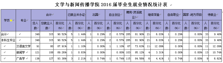 (一)基本情况 betway必威中国2016届本科毕业生共有348人,其中,广告学136人,新闻学121人,汉语言文学91人。