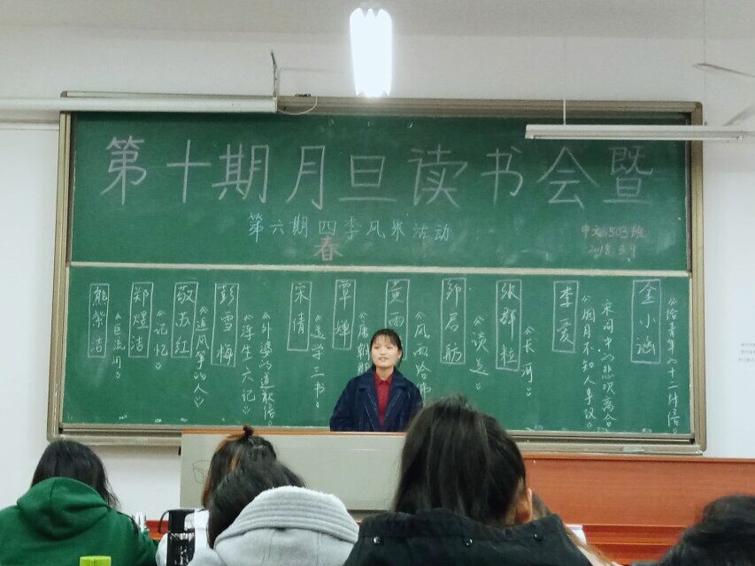 3月9日晚,中文1503班在文新楼107教室举办第十期“月旦书香”读书交流会暨第六期“四季风采”展示活动。